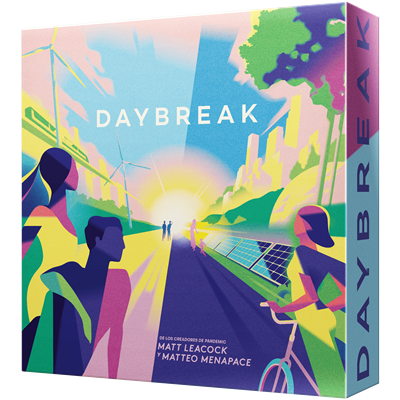 Preventa (salida estimada 28/02/2025) Daybreak es un juego en el que construirás las más alucinantes tecnologías y moldearás sociedades para que puedan resistir a un planeta que se sobrecalienta. Durante la partida jugarás cartas en pilas, prepararás poderosas combinaciones y elaborarás estrategias junto con tu grupo de juego para lograr descarbonizar la sociedad. Y como Daybreak es 100 % cooperativo, ¡ganáis o perdéis en equipo!